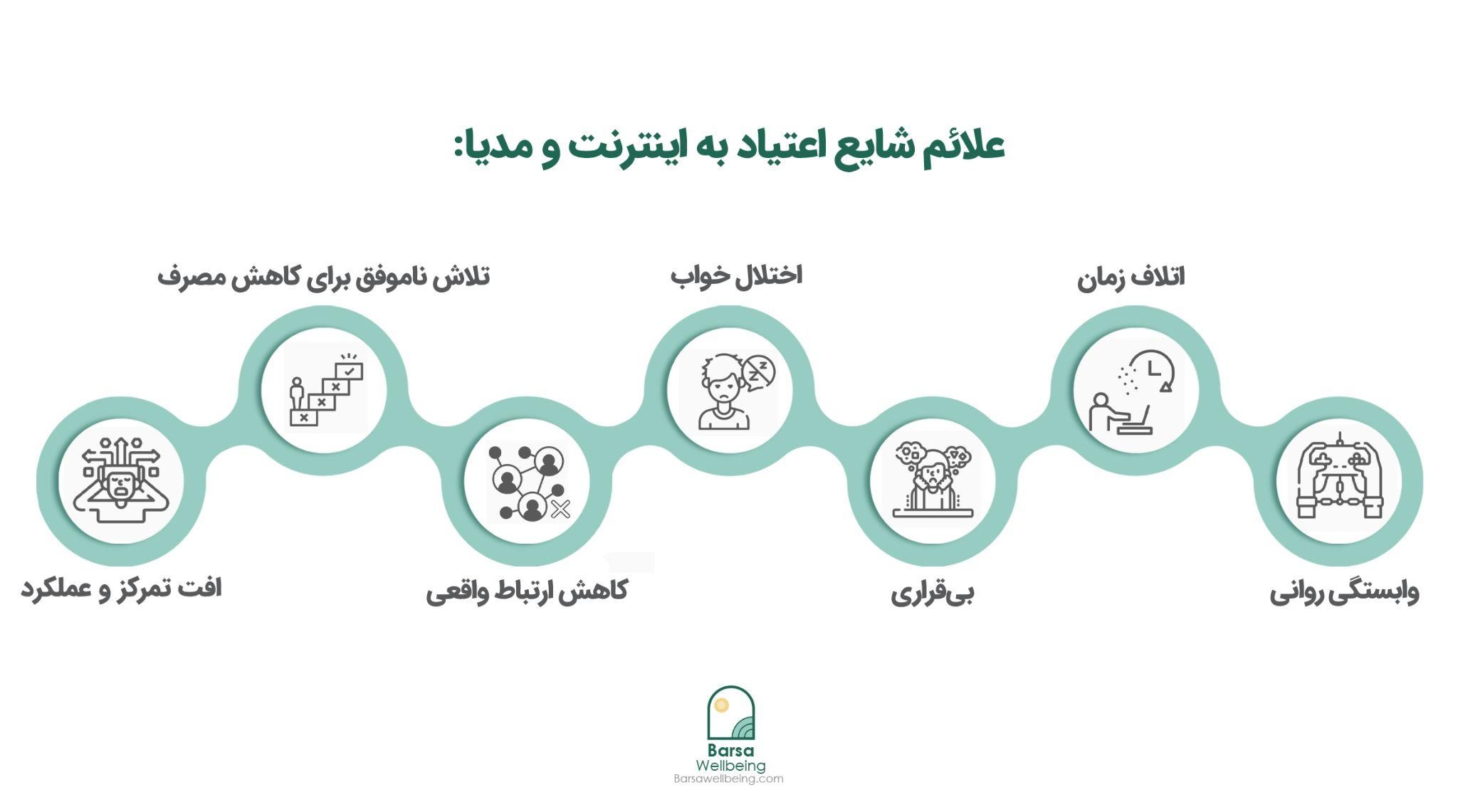 • وابستگی به وب‌گردی، خرید آنلاین یا اطلاعات‌جویی بی‌وقفه